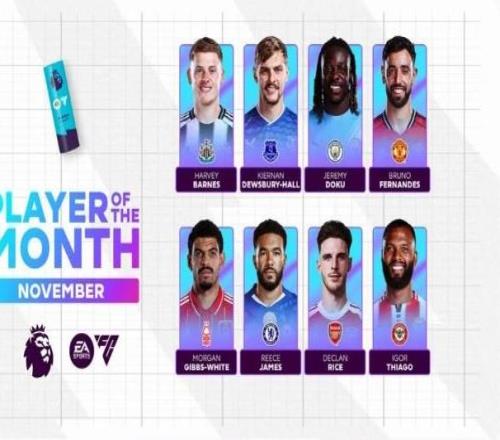 英超11月最佳球员候选:多库、B费、里斯詹姆斯、赖斯等在列