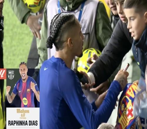 首开记录,拉菲尼亚当选黄潜vs巴萨全场最佳球员