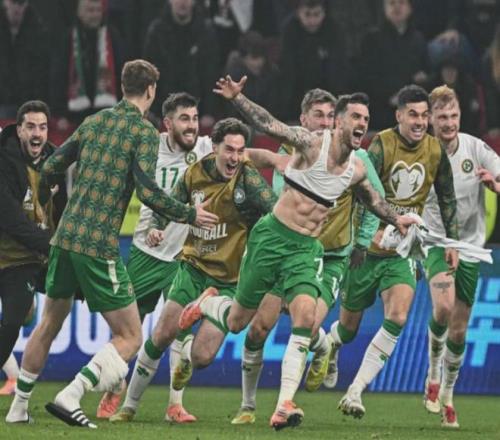 补时绝杀晋级附加赛后,看台上爱尔兰球迷的欢呼声震耳欲聋。