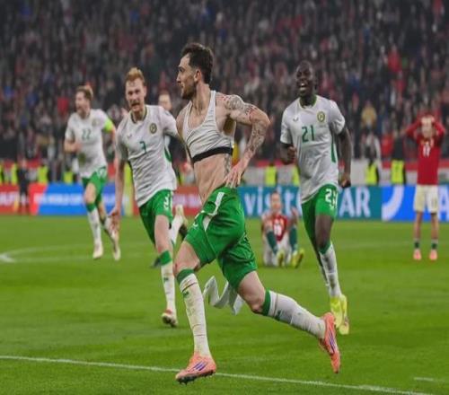 布达佩斯、普斯卡什球场,客队爱尔兰队想要晋级附加赛还需要再进一球。